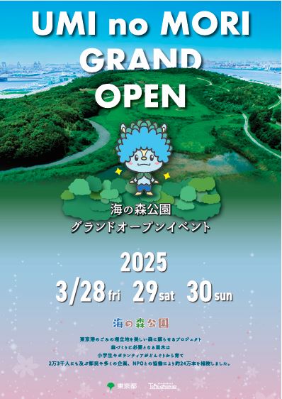 自然豊かで広大な眺望も楽しめる「海の森公園」が3月28日(金)にグランドオープン!グランドオープンを祝い、自然豊かで広大な海の森公園の魅力を体感できるイベントを開催します。