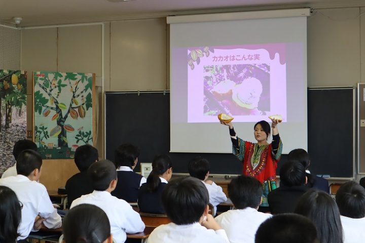 株式会社明治から講師をお招きし、チョコレートという食品を通じて「自然の恵み」や「歴史」「国際協力」について楽しく学びます。