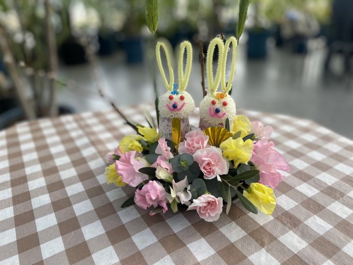 花でうさぎのひな人形を作って、桃の節句をお祝いしましょう。