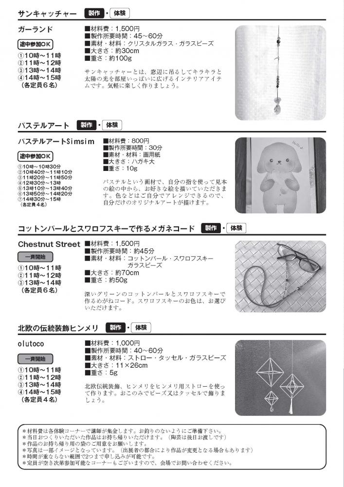 | 備考 | *全て事前予約申込が必要です。 *材料費はお釣りのないように、当日直接先生へお支払ください。 |