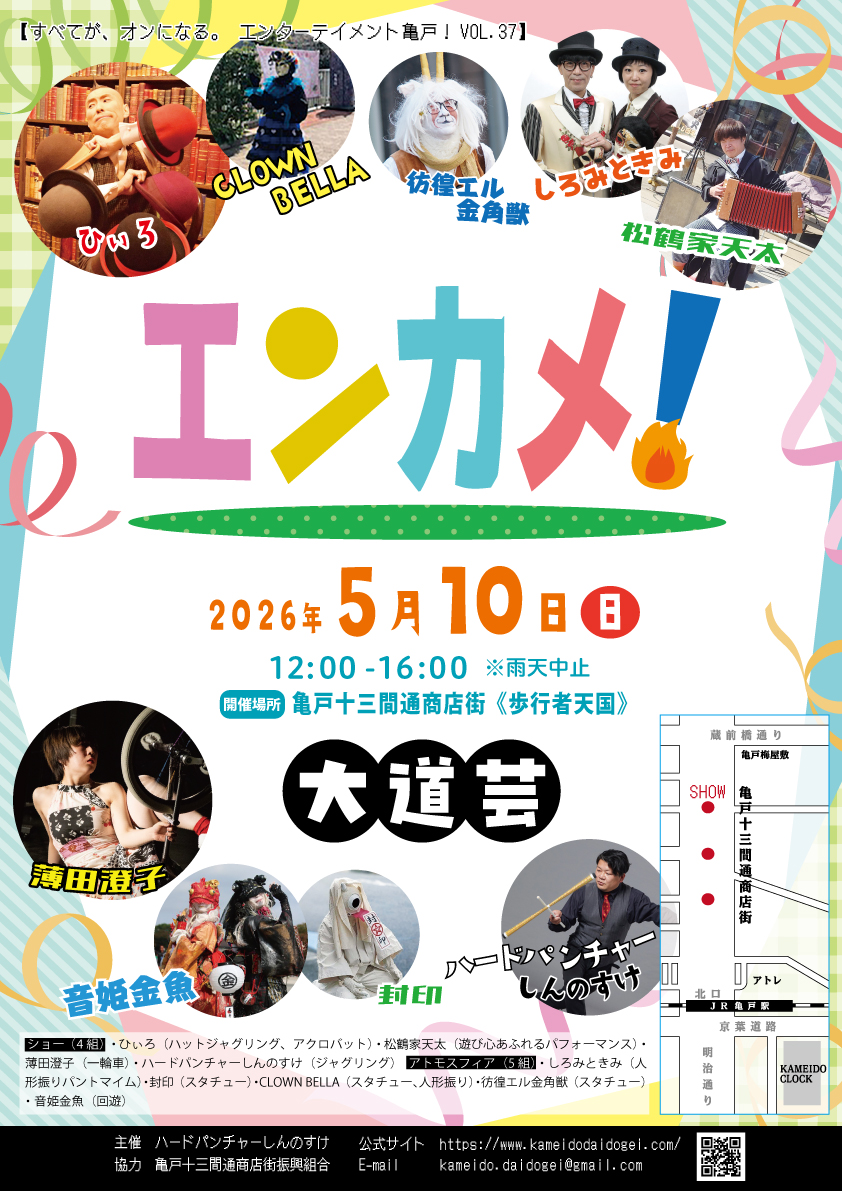 | 関連URL | https://www.kameidodaidogei.com/(エンターテイメント亀戸!公式サイト) |