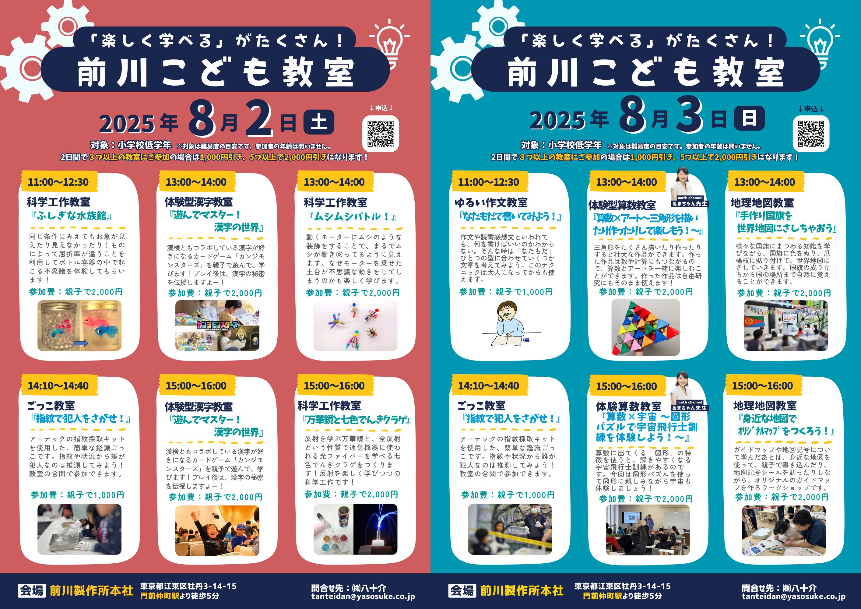 株式会社前川では本社の一部を開放し、STEAM教育のプログラムを中心に、2023年より【前川こども教室】開催しています。今回は8月ということで、自由研究の一助になれるようなお教室です!