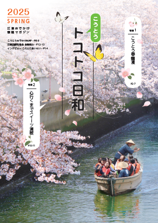 今号では、こうとう春爛漫と題して、船に乗ったり、のんびり散策したり、時には寄り道したりと、江東区内の桜がより一層楽しめるプランをご提案します。