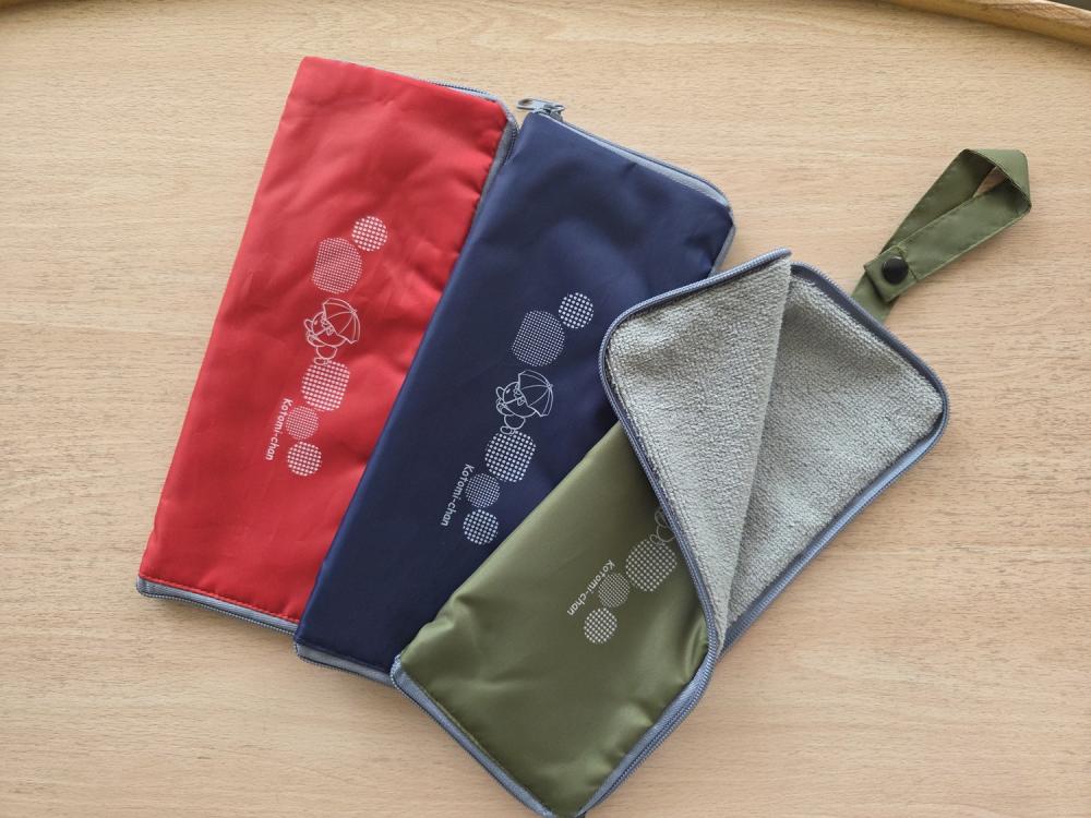 完全防水ではありません。水滴を内側のタオル面で軽くふき取ってご使用ください。