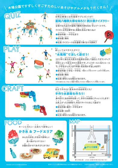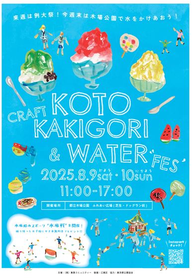 木場公園 ふれあい広場にて、かき氷と水遊びをテーマにした夏祭り「KOTO CRAFT KAKIGORI & WATER FESTIVAL」開催!木場公園で熱い夏を涼しく過ごそう!楽しい遊びやグルメが盛りだくさんのイベントです。