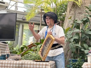 養蜂家の荒野さんからミツバチについて学びましょう。採みつや蜜の食べ比べも予定中です。(※状況により内容は異なります。)