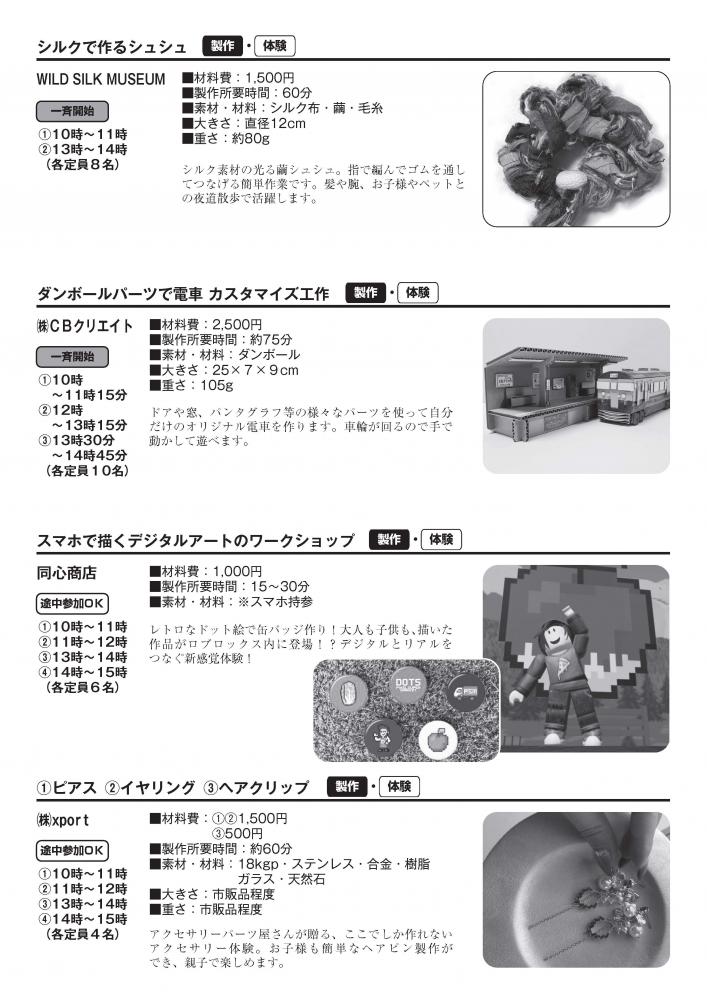 | 備考 | *全て事前予約申込が必要です。 *材料費はお釣りのないように、当日直接先生へお支払ください。 |