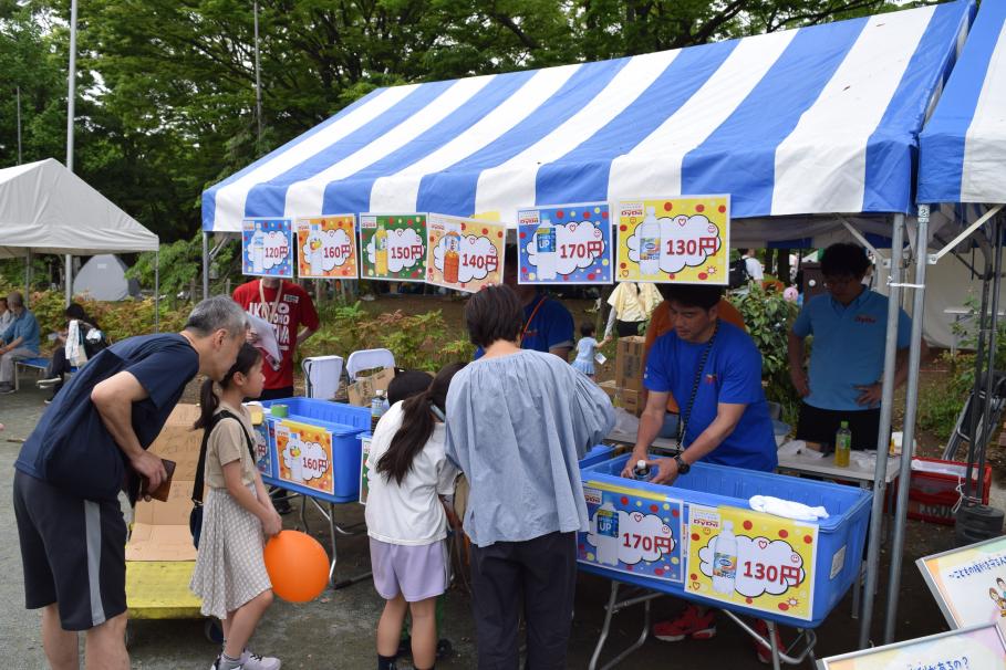 あそびひろばでは、ミニ列車やふわふわのアトラクションのほか飲料販売、児童館・協力団体・区民参加団体によるブースがあります。