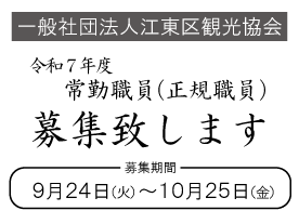 | お問い合わせ先 | 一般社団法人江東区観光協会 事務局 「職員採用担当者」宛 メール:saiyou@koto-kanko.jp |